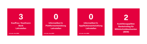Dein erfolgreicher Einstieg ins Bankgeschäft. Ein gut und vielseitig ausgebildeter Nachwuchs ist für den langfristigen Erfolg der Banken entscheidend. Neben der Ausbildung Kauffrau/Kaufmann Bank, dem Bankeinstieg für Mittelschulabsolventen bieten die Banken auch spannende Ausbildungen im Bereich Informatik an.